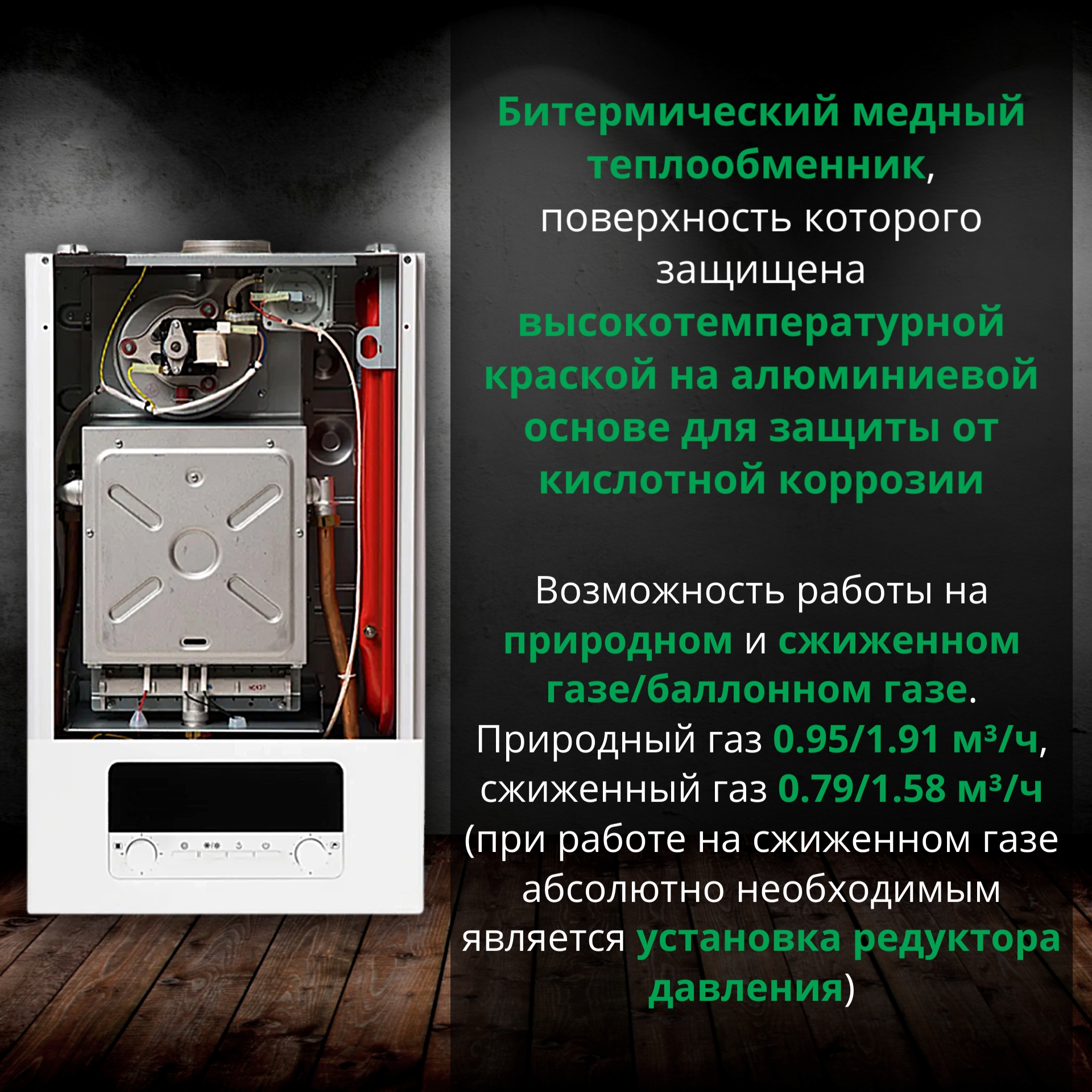 | Материал первичного теплообменника | медь |