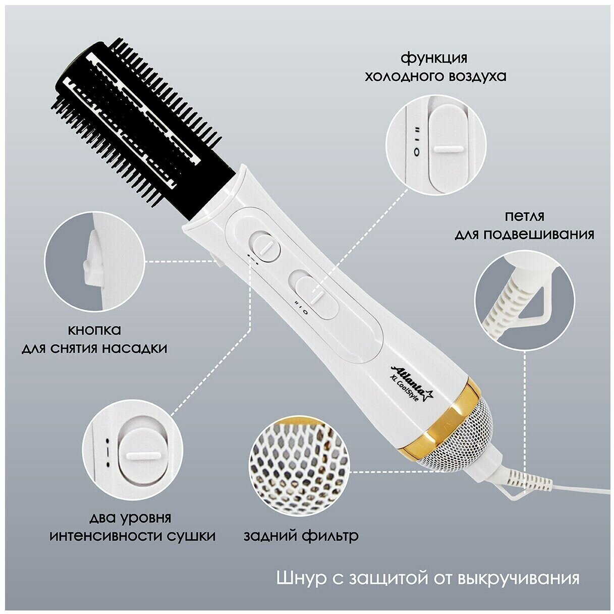 Фен-щетка Atlanta 5-в-1 ATH-6842, 1000Вт, белый