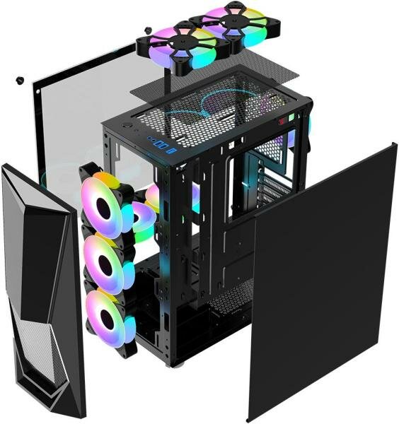 | Плюсы: | Бюджетный корпус с 3 RGB куллерами, за свою цену очень хорош |