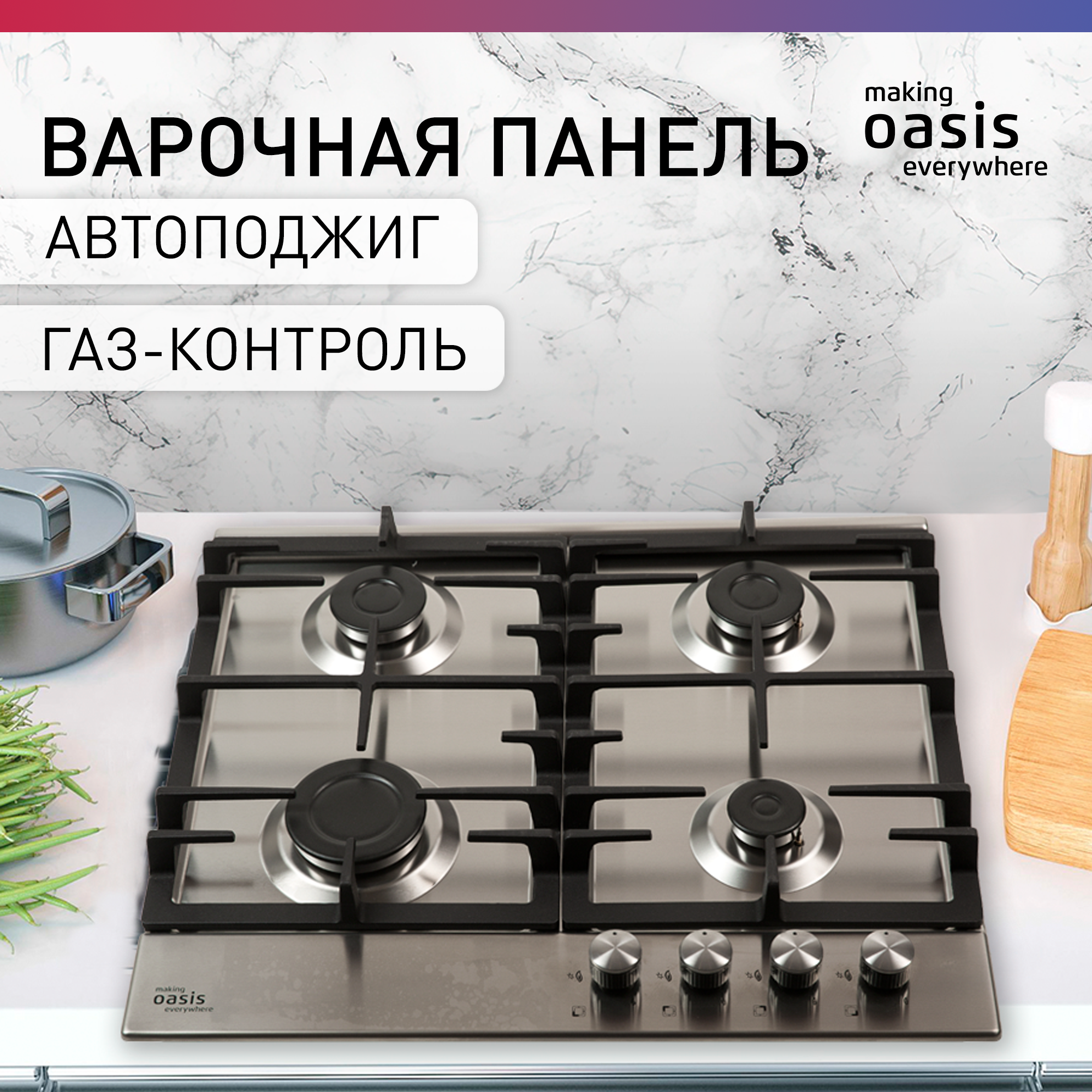Варочная панель газовая встраиваемая making Oasis everywhere P-MNP / газовая плита на 4 конфорки