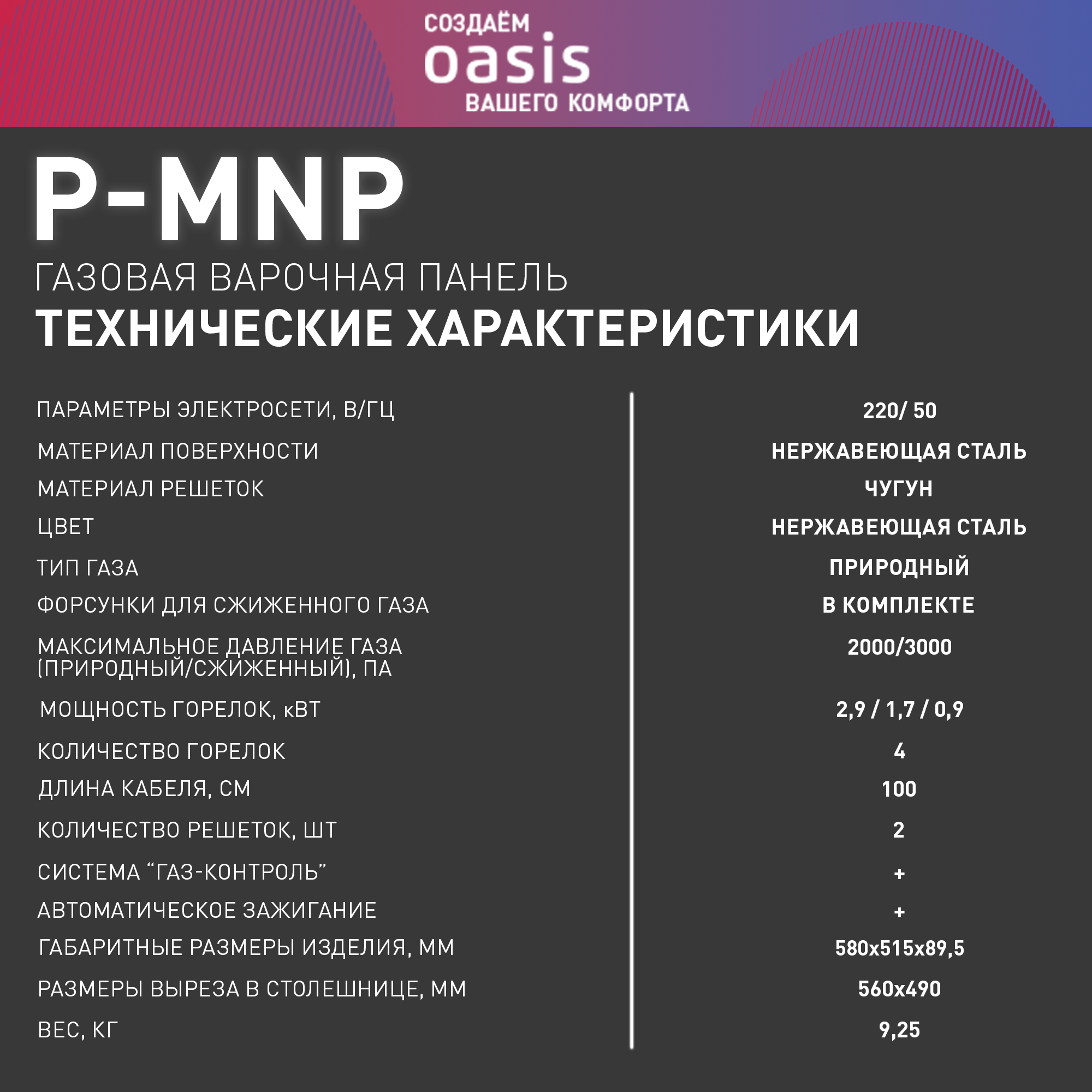 Газовая варочная панель OASIS P-MNP (4640130932886)