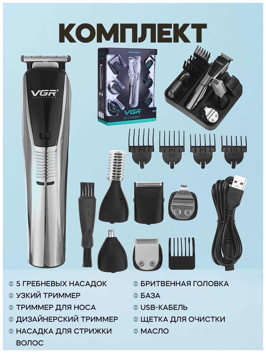 Купить Машинка для стрижки волос усов и бороды VGR V-029 6 в 1 триммер беспроводной 100 минут а./р