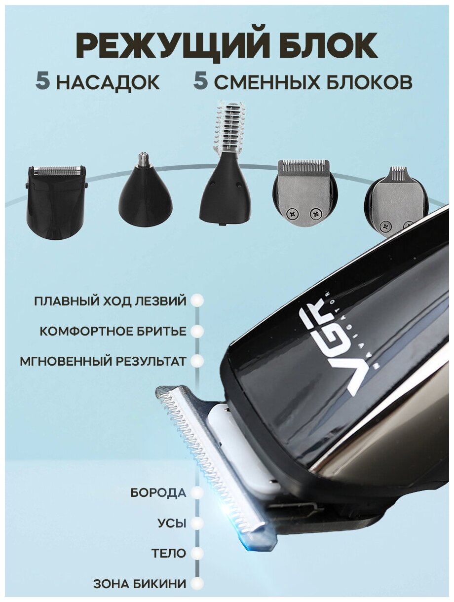 Машинка для стрижки волос усов и бороды VGR V-029 6 в 1 триммер беспроводной 100 минут а./р интересное:
