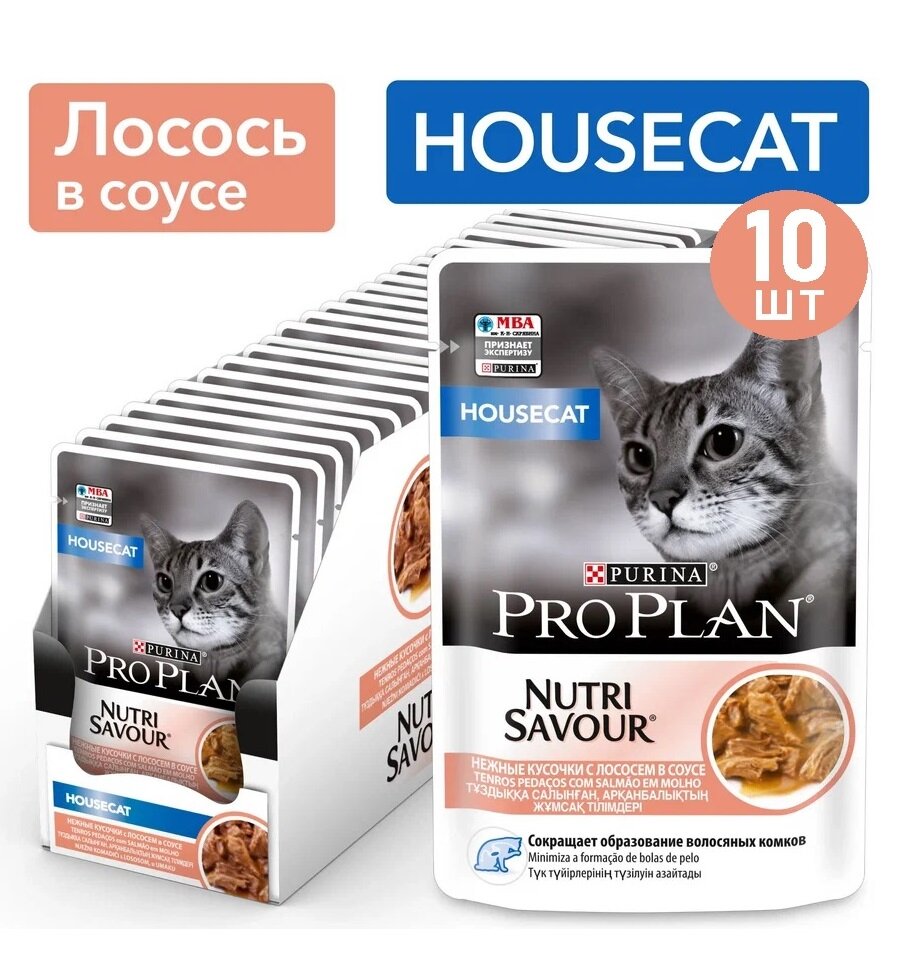 Корм для кошек PRO PLAN Housecat для домашних, с лососем в соусе пауч 85г (упаковка - 26 шт)