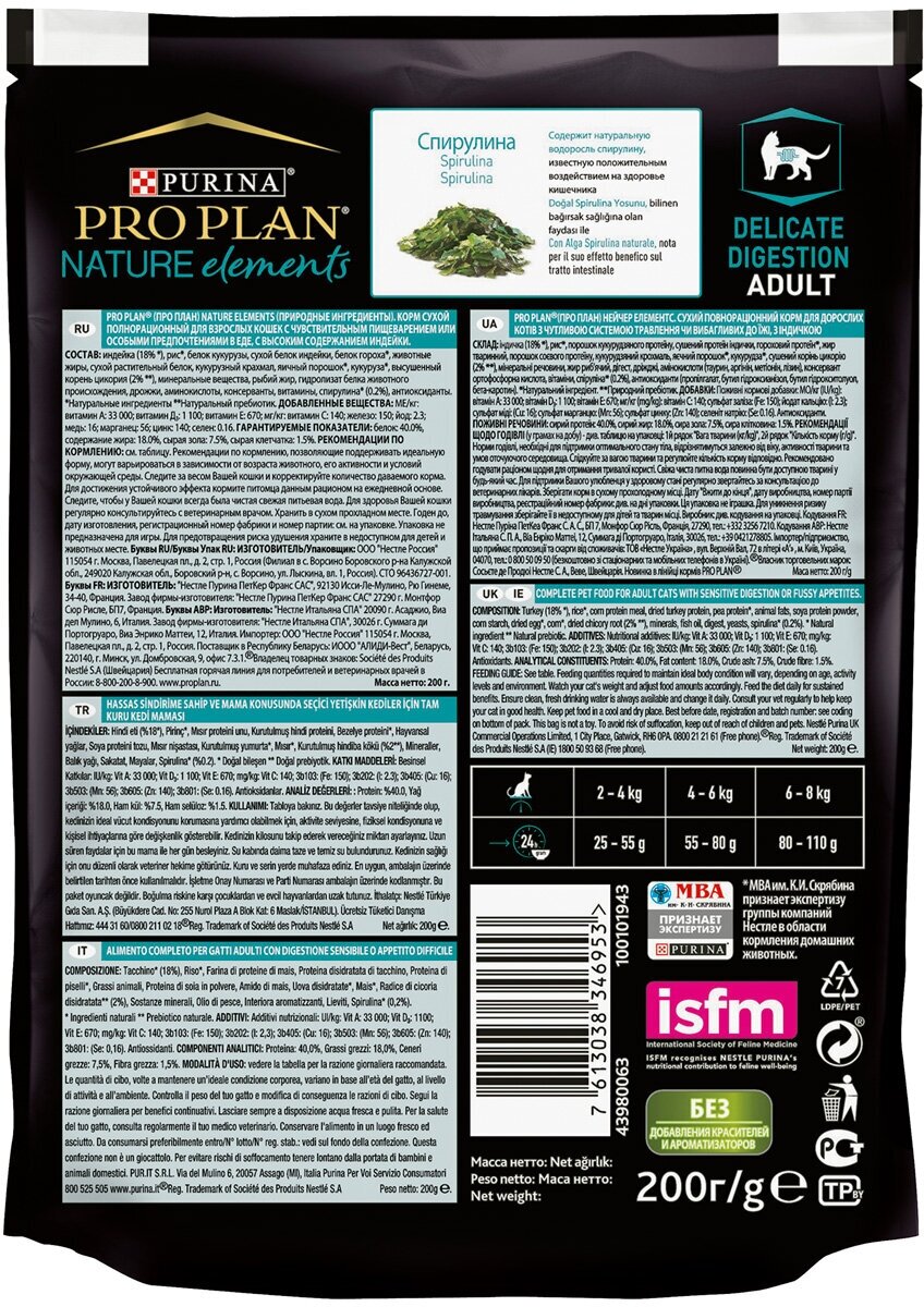 PRO PLAN NATURE ELEMENTS CAT DELICATE DIGESTION для взрослых кошек с чувствительным пищеварением с индейкой (0,2 + 0,2 кг) интересное: