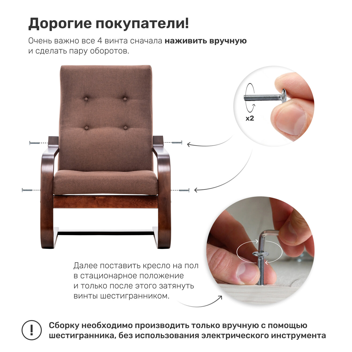 | Отзыв: | Понятная простая сборка. Кресло мягкое, комфортное. Можно в нем слегка попружинить. Месяца за 1,5 эксплуатации нареканий нет |