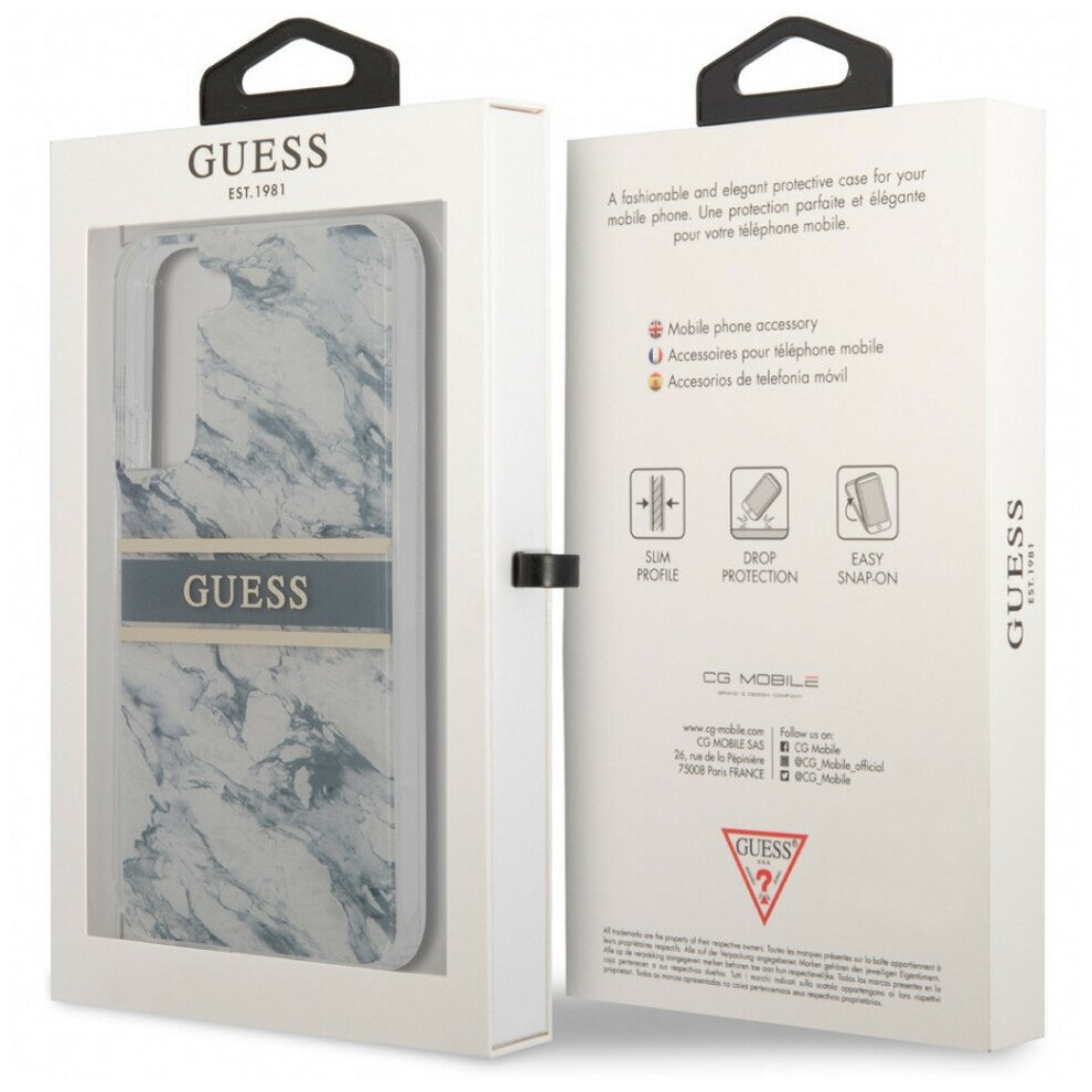Купить Чехол Guess Marble with Gold stripe Hard для Galaxy S22 Plus, синий