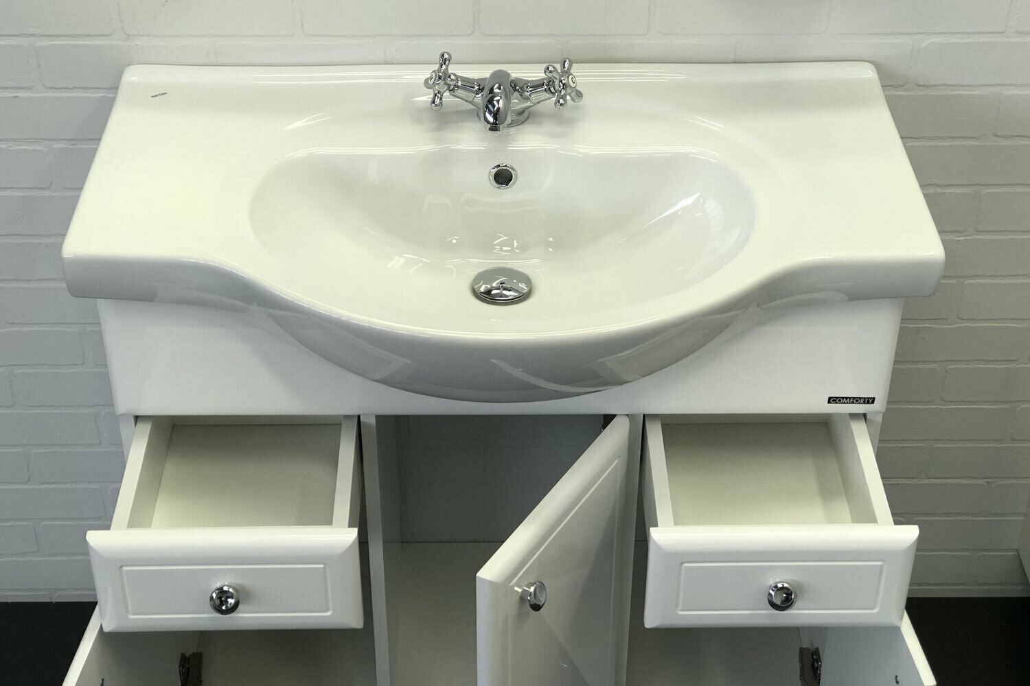 Купить COMFORTY. Тумба-умывальник "Сочи-85" белый глянец с раковиной Сенеж 87
