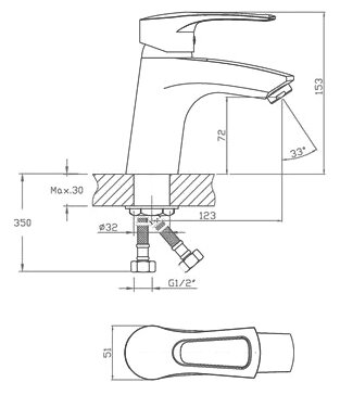 Смеситель для умывальника Zollen Siegen короткий излив, 2 шпильки, картридж 40 мм SI53411622 447975