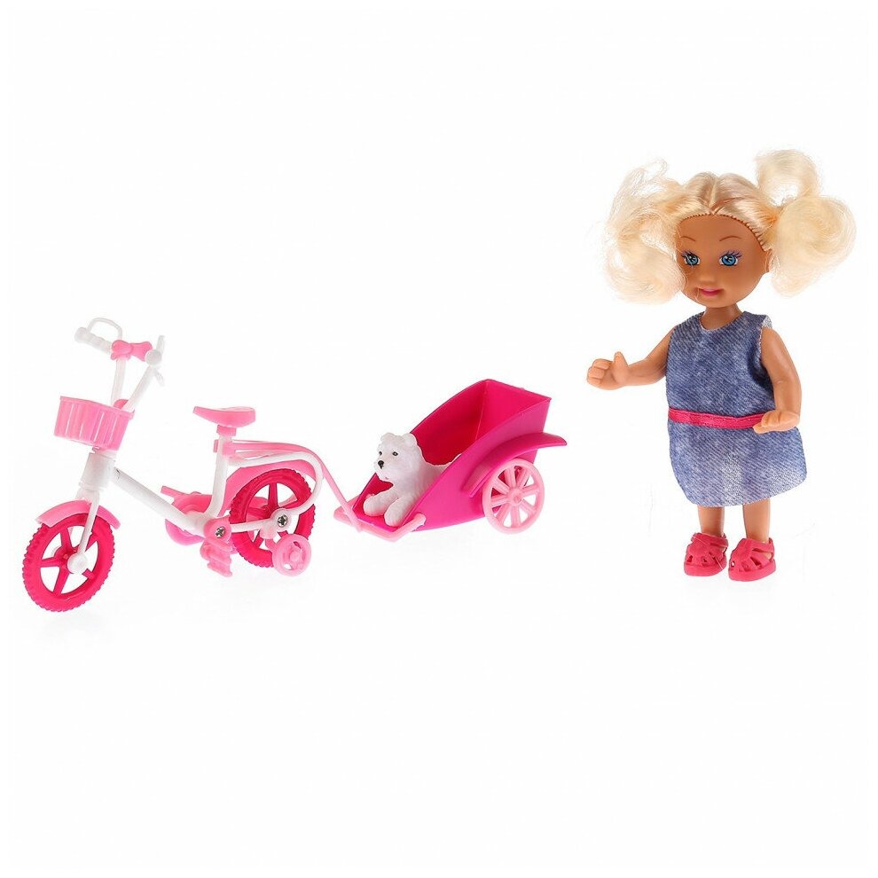 Кукла Карапуз Машенька 12см в наборе велосипед с прицепом питомец 263717 Карапуз