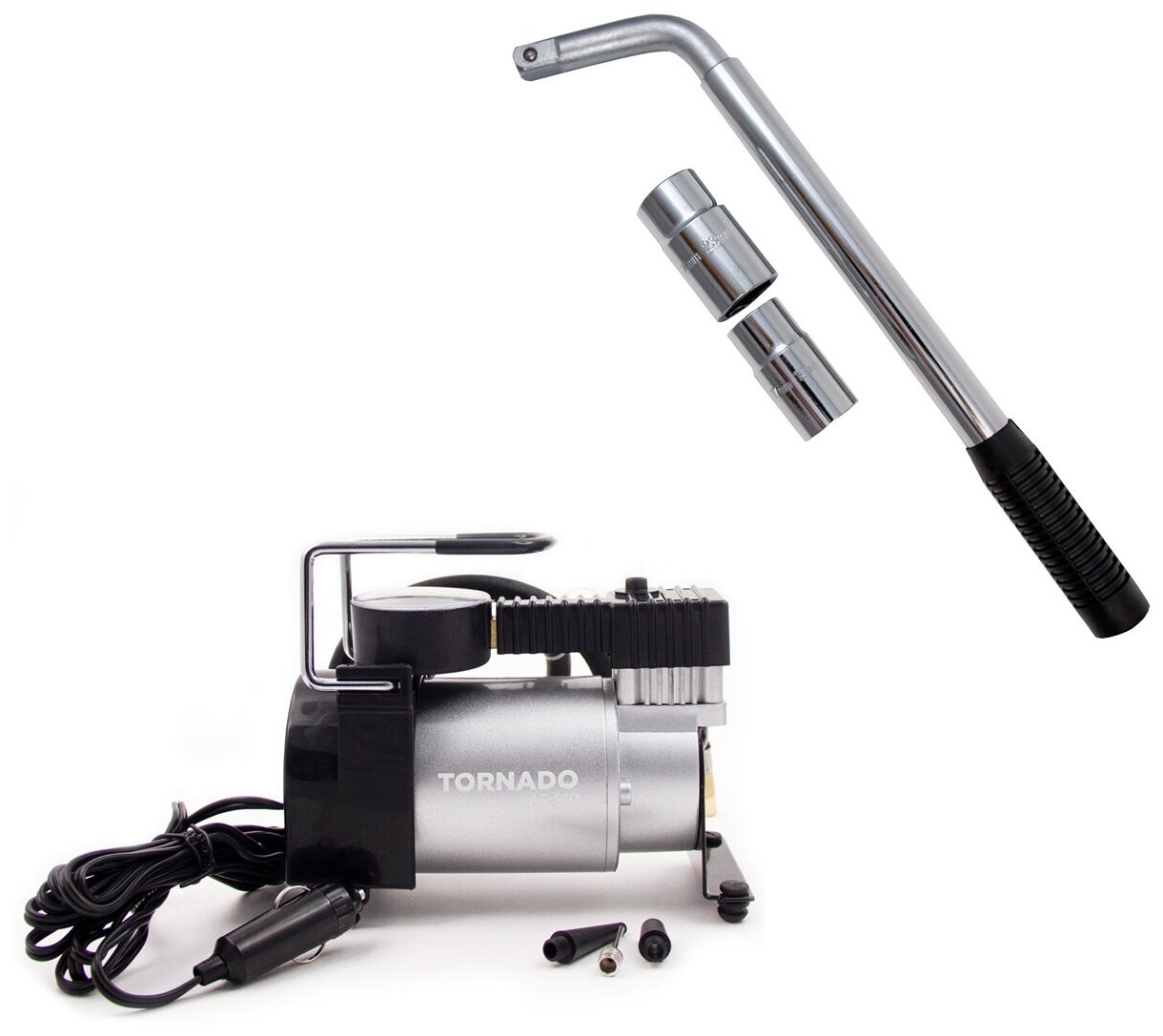 | Подробная комплектация | Компрессор автомобильный 30 л/мин SKYWAY ТОРНАДО СТАНДАРТ AC-580 автокомпрессор, компрессор для автомобильных шин 12В, 7 АТМ / воздушный компрессор + Ключ баллонный телескопический, баллонник без фиксации LTW-1, 17x19x21x23 мм AVS, КОМПЛЕКТ AC-580/A07463S |