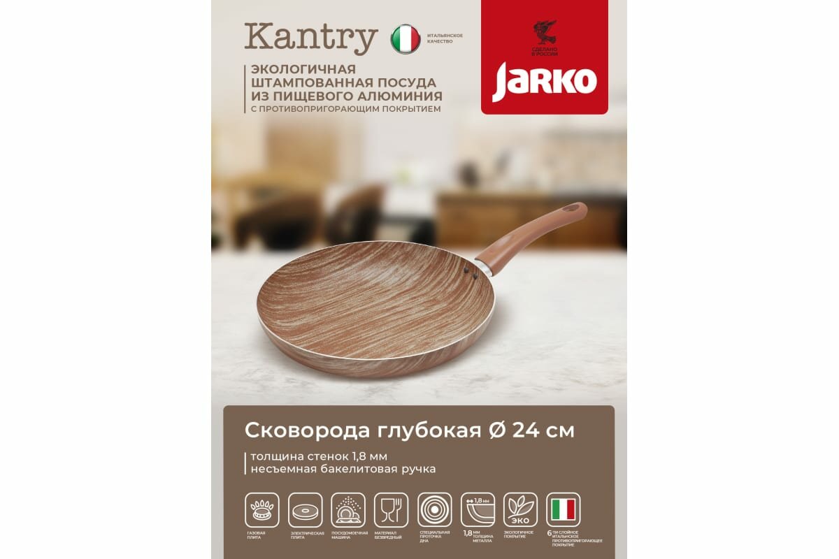 Сковорода глубокая Kantry, d=24 см, пластиковая ручка, антипригарное покрытие, цвет коричневый интересное: