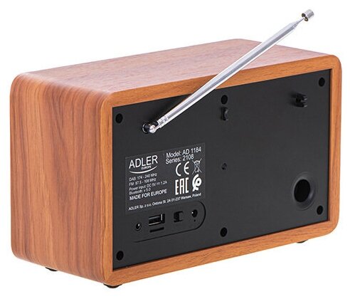 Радиоприёмник с USB и Bluetooth Adler AD 1184/радиоприемник от сети с будильником и часами/AM/FM/DAB+/динамики 3Вт/деревянный корпус/черно-коричневый интересное: