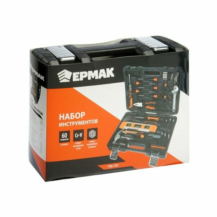 Ермак Набор инструментов 60 предметов в чемодане для ремонта, починки машины, в подарок мужчине, парню