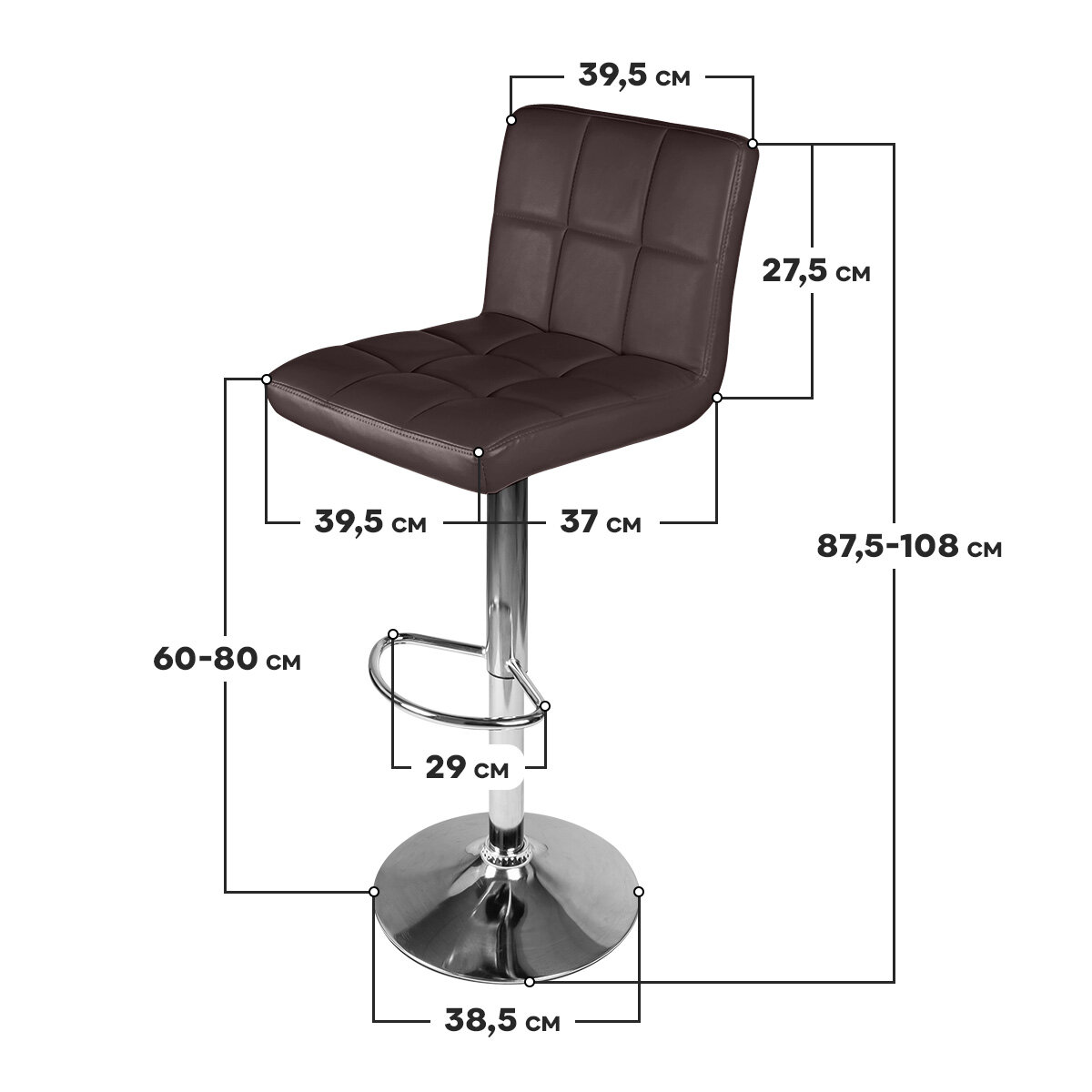 | Плюсы: | Все устраивает. И крутятся, и поднимаются, сидеть удобно. |
