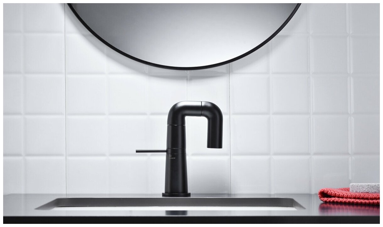Смеситель для раковины умывальника с поворотным изливом и прогресивным картриджем Haiba HB10813-7, черный интересное: