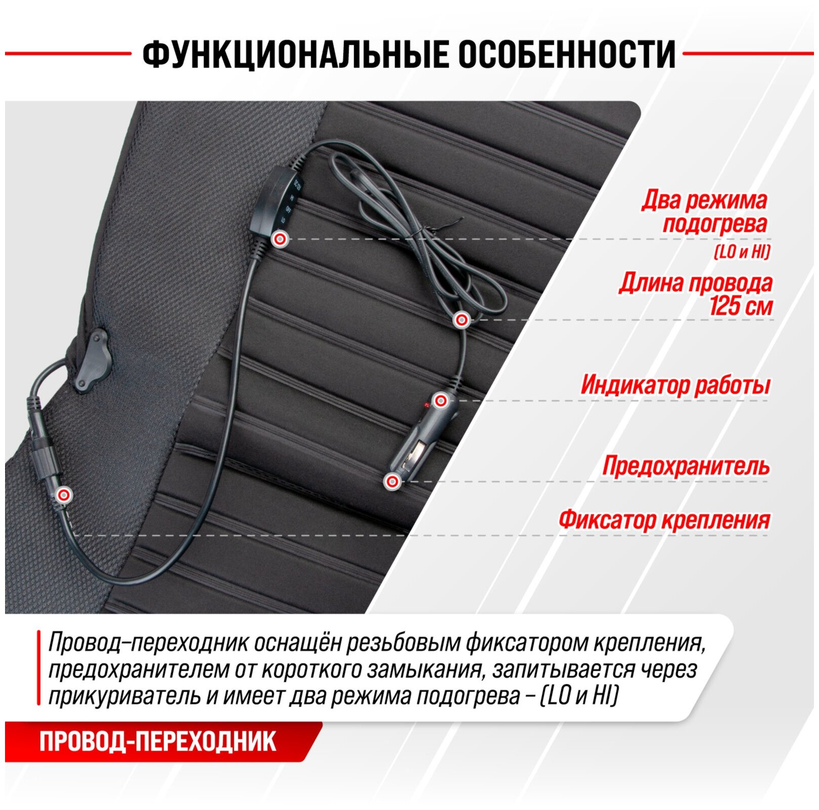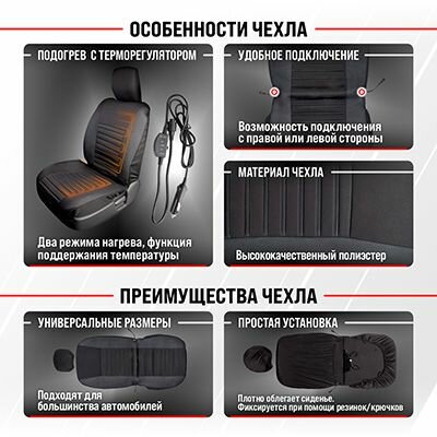 Чехол сиденья с подогревом полиэстер SKYWAY с терморегулятором (2 режима) Черный 12V 116х56см 2,5А-3А (2 шнура: справа, слева) интересное: