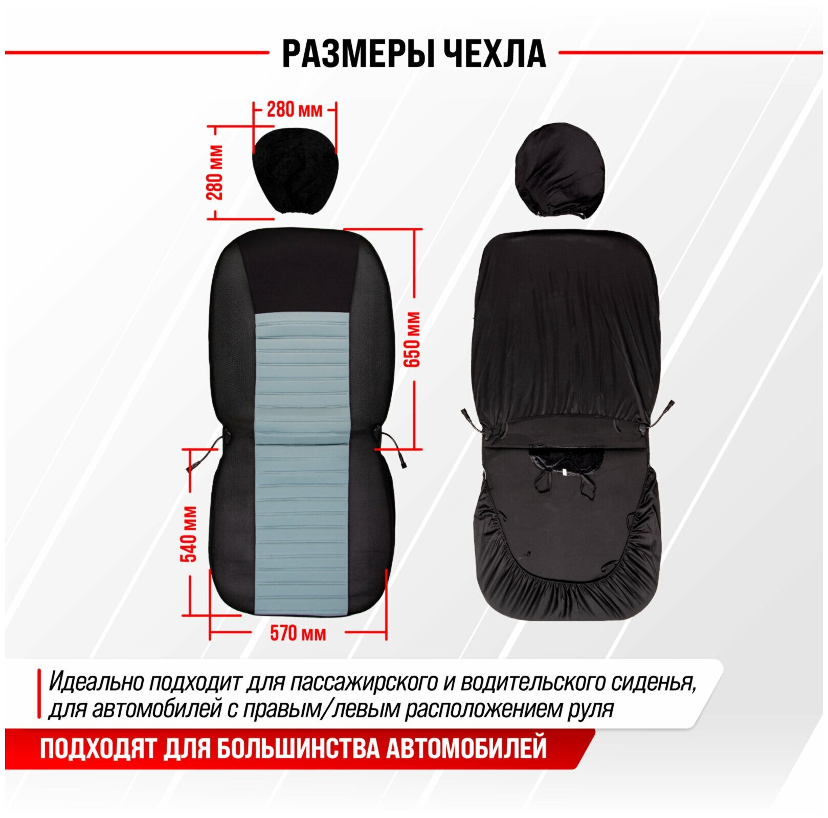 Чехол сиденья с подогревом полиэстер SKYWAY с терморегулятором (2 режима) Черно\Серый 12V 116х56см 2,5А-3А (2 шнура: справа, слева), S02202004