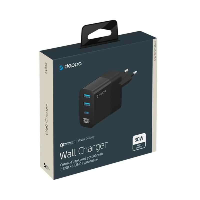 Сетевое ЗУ Deppa Wall Charger USB-A + USB-C, QC 3.0, PD, дисплей, 30 Вт