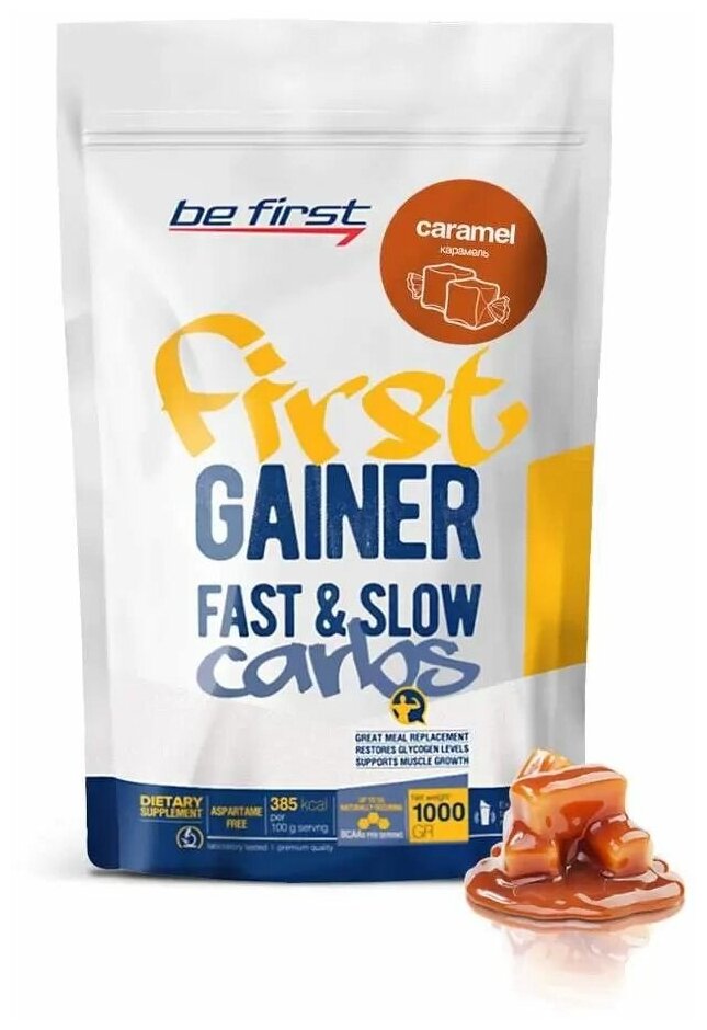 Гейнер со злаками и витаминами Be First First Gainer Fast & Slow Carbs 1000 гр, карамель интересное: