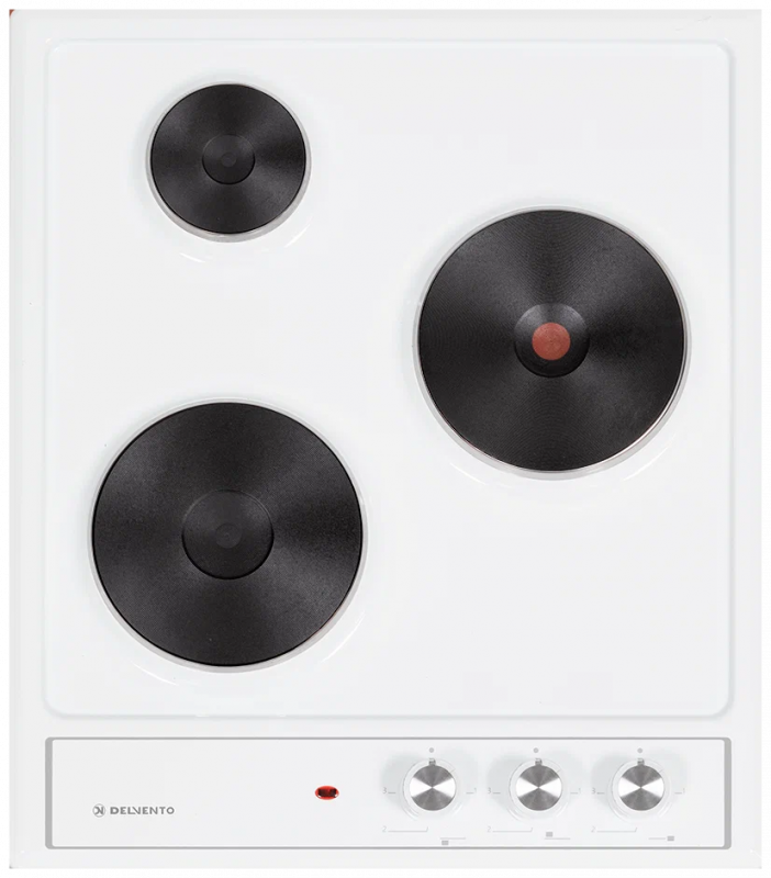 Варочная панель электрическая DELVENTO V45E03W001 / 45 см / 3 конфорки ( 1 быстрый нагрев) / фронтальная панель управления / белый цвет / 3 года гарантии