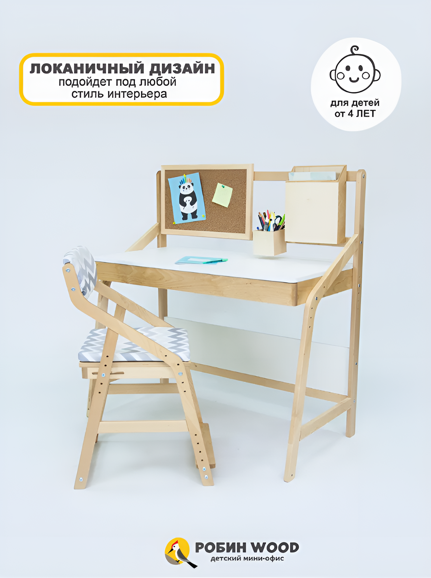 Стул детский регулируемый по высоте для школьника "Робин WOOD" без покрытия с чехлом Мечта интересное: