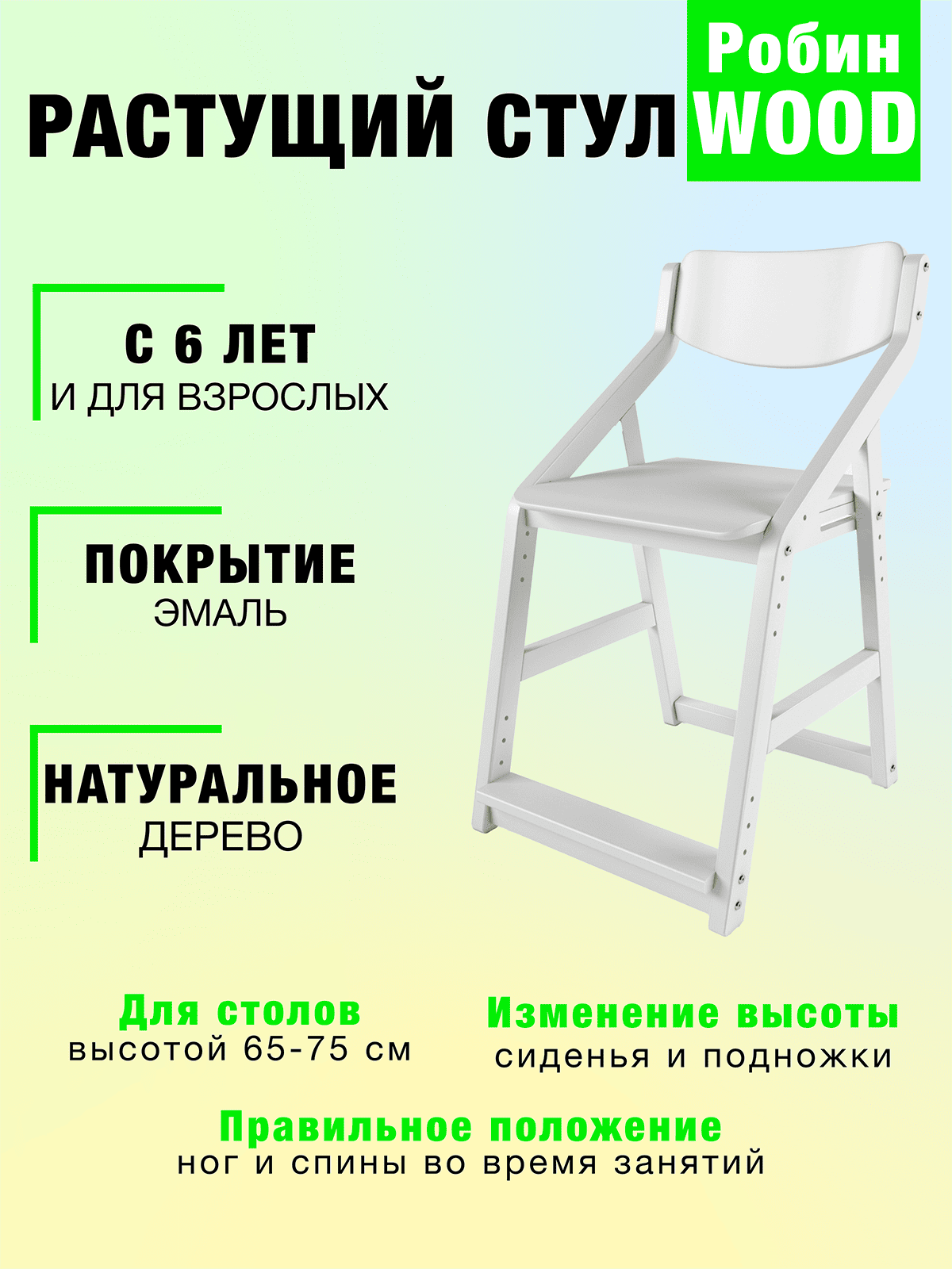 Стул детский регулируемый по высоте для школьника "Робин WOOD" Белый интересное:
