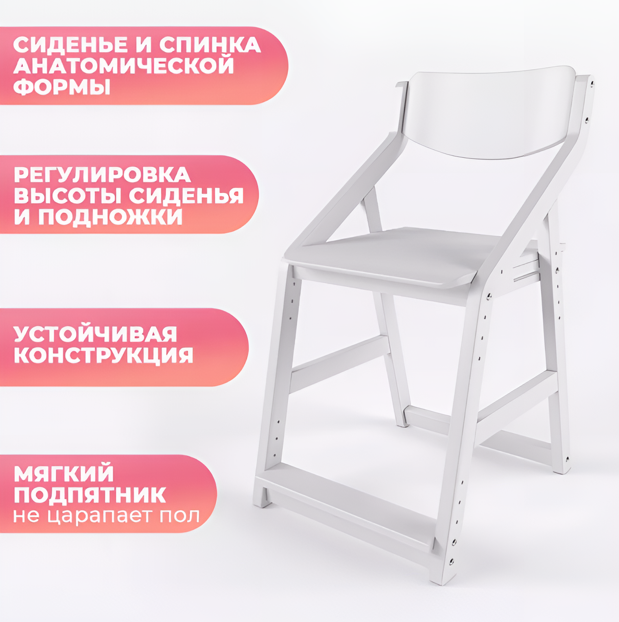 | Дополнительная информация | преимущества наших растущих стульев; 1 безопасность на первом месте, устойчивая конструкция и закругленные углы на всех деталях, стулья выдерживают вес до 100 кг; 2 здоровье, сиденье и спинка анатомической формы, обеспечение удобной посадки и правильной осанки; 3 стулья растут вместе с ребенком и прослужат долгие годы; 4 универсальность, регулировка сиденья и подставки для ног, стулья подходят как малышам, так и взрослым; 5 экологичность, стулья изготовлены из массива березы и экологически чистой фанеры; 6 легкая чистка; изготовлен из массива березы и березовой фанеры |