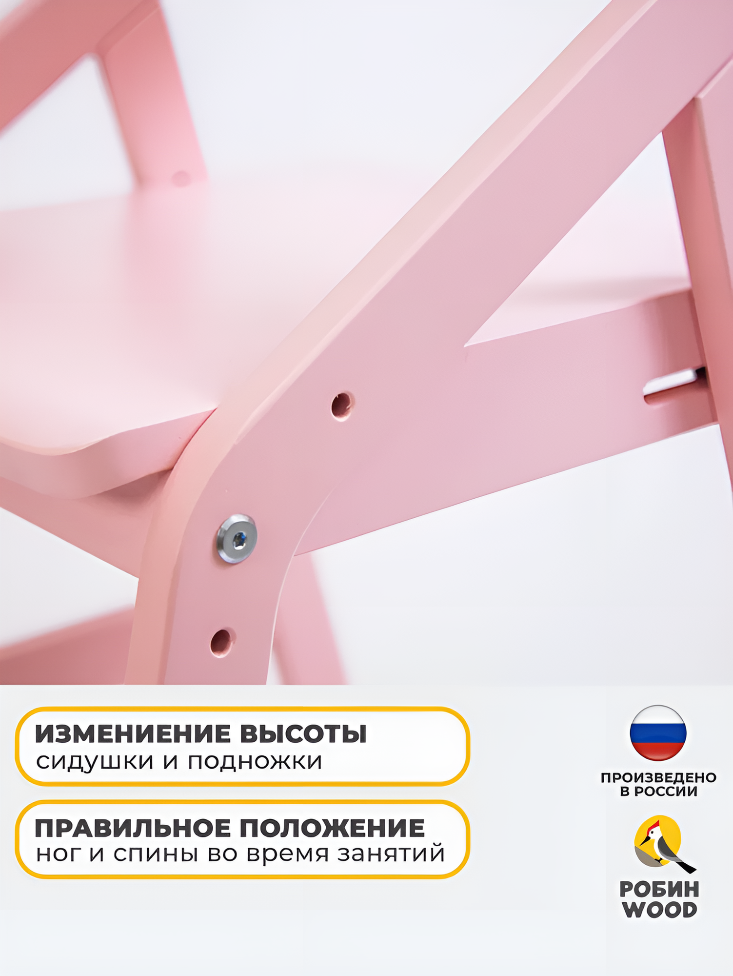 Стул детский регулируемый по высоте для школьника "Робин WOOD" Розовый интересное: