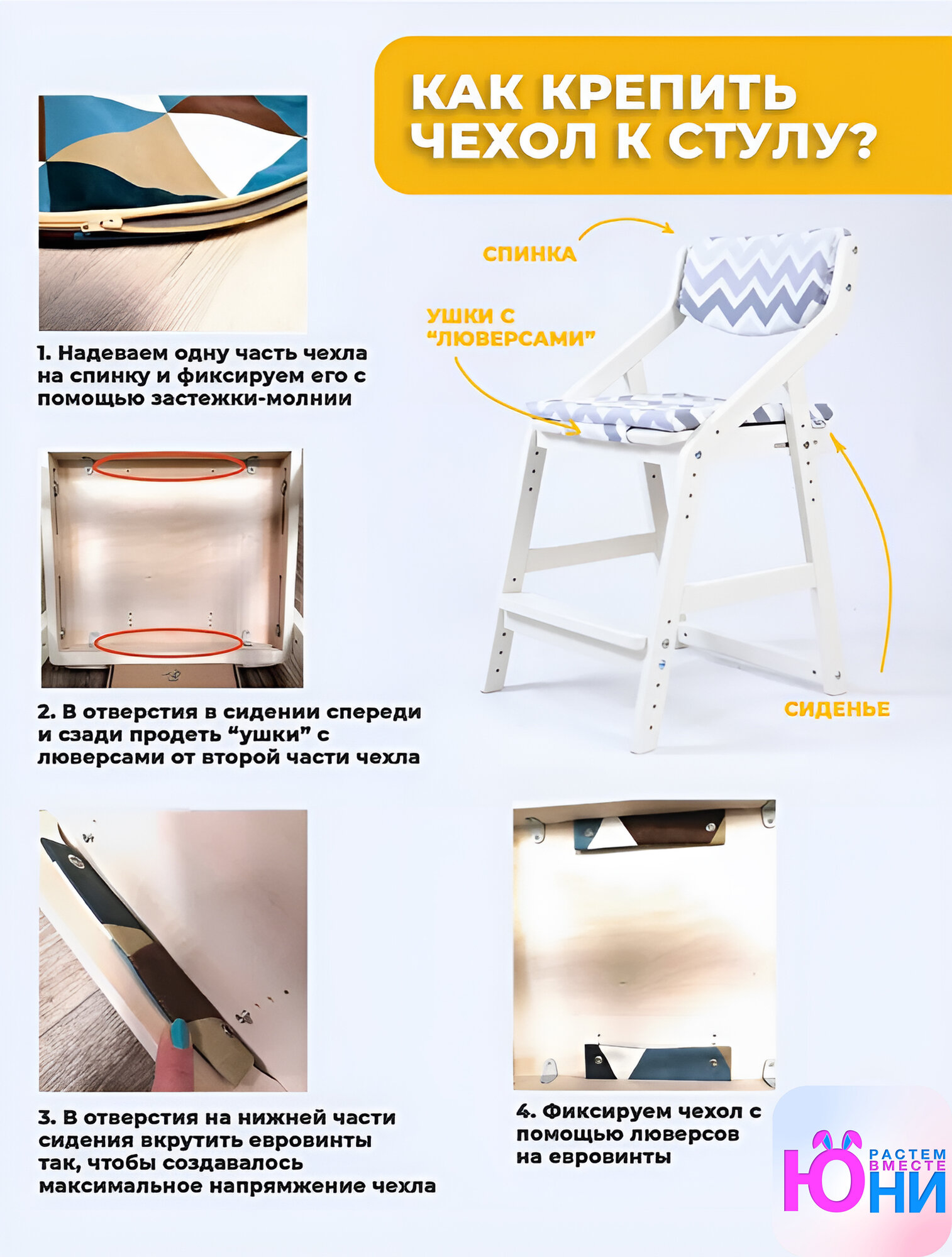 Стул детский регулируемый по высоте для школьника "Робин WOOD" Белый с чехлом Зигзаг интересное: