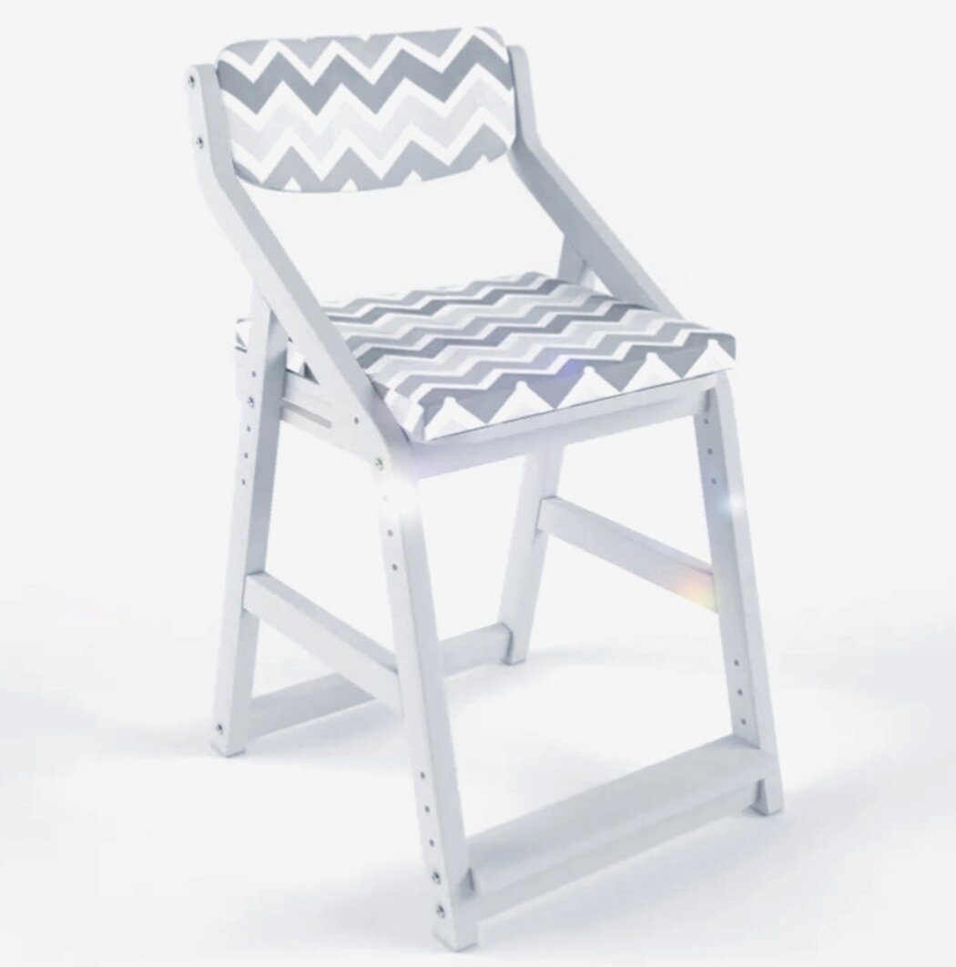 Стул детский регулируемый по высоте для школьника "Робин WOOD" Выбеленное дерево с чехлом Зигзаг интересное:
