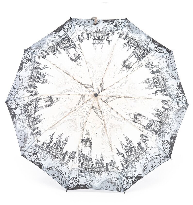 Зонт "Три Слона" женский №310-5, купол D=103 см, 10 спиц, суперавтомат бежево-черный