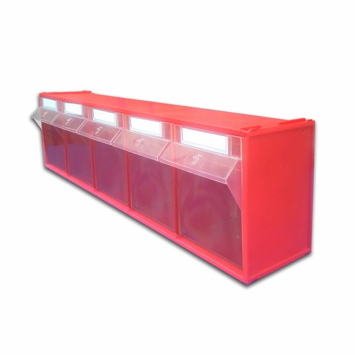 F-600-5_Короб Откидной Стелла-Техник F-600-5 , 600Х140х168мм, 5 Ячеек, Красный, Прозрачный стелла-техник арт. F6005