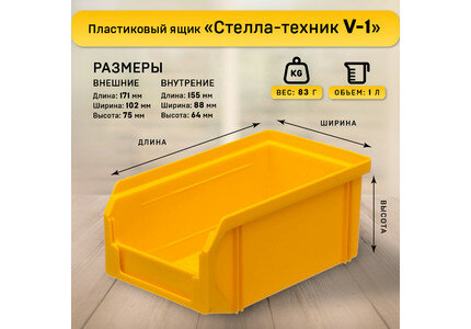| Подробная комплектация | пластиковый ящик Стелла-техник V-1 - 6 шт.; металлическая планка-органайзер для крепления к стене - 1 шт. |
