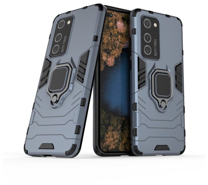 Противоударный чехол с кольцом Panther Case для Huawei P40 Pro синий интересное: