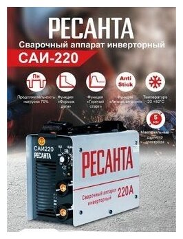 Купить Сварочный аппарат инверторный Ресанта САИ 220 , 220 ампер , комплект кабелей