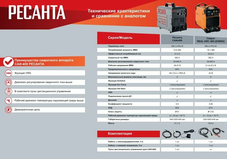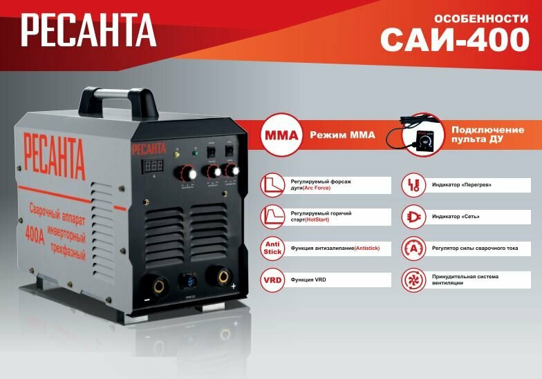Сварочный аппарат инверторный Ресанта САИ 400 интересное: