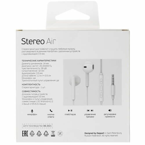 Проводная гарнитура Deppa Air белый интересное: