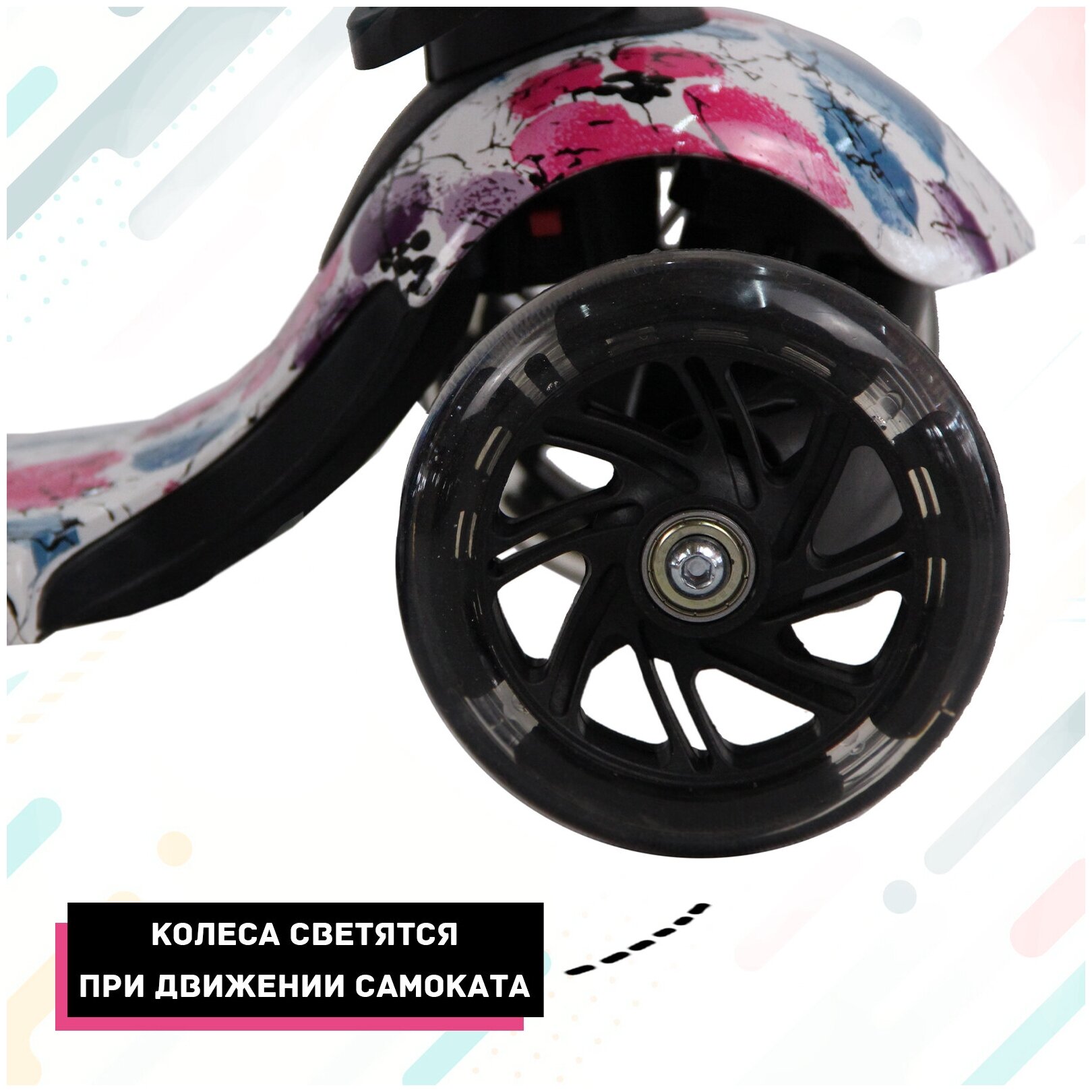 Самокат-трансформер 5в1 sx Scooter для детей от 1 до 5 лет со светящимися колесами, 110 мм, Розовые цветы интересное: