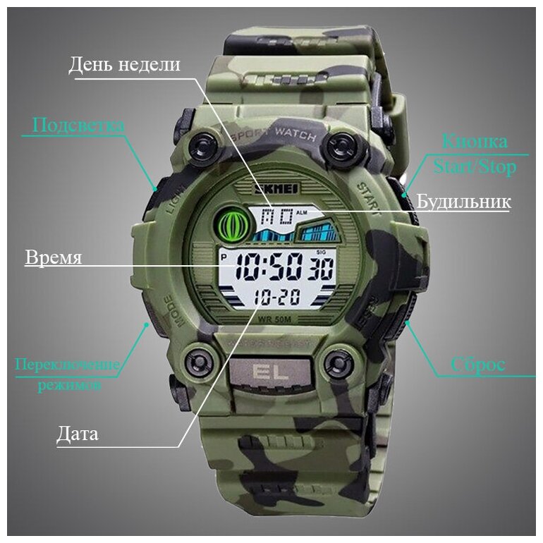 Часы детские SKMEI 1635 - Зеленый камуфляж интересное: