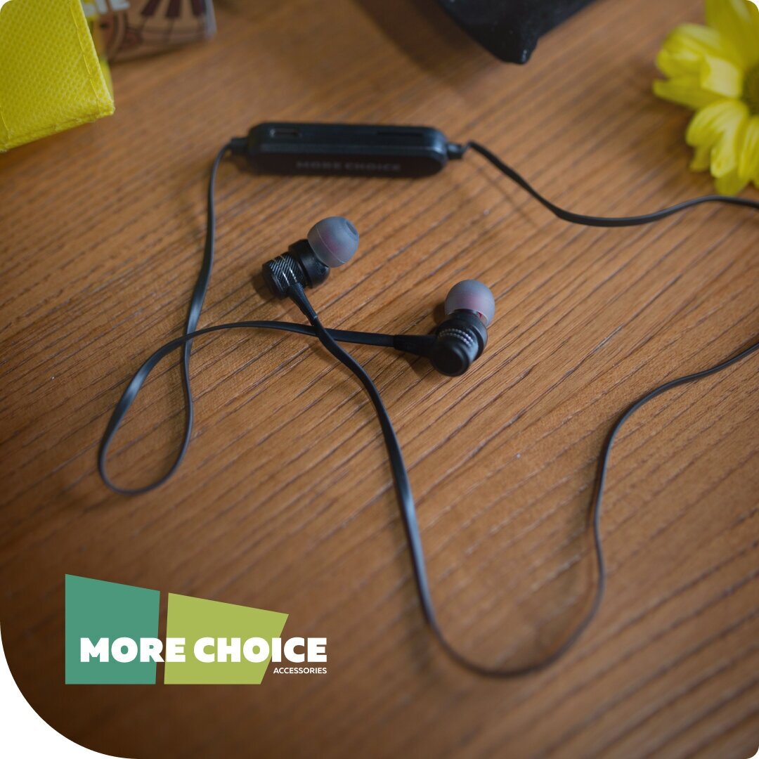 Гарнитура Bluetooth внутриканальная More Choice BG20 с шейным шнурком + сумочка для наушников (Black