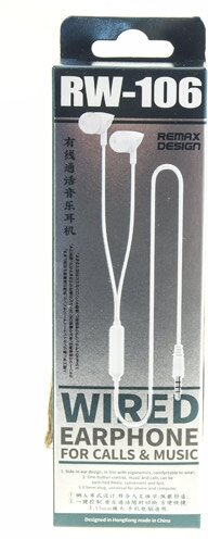 Купить Гарнитура REMAX RW-106 Earphone 3.5 мм, 1.2м, громкость +/-, вставная (белый)