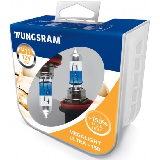 Лампа автомобильная Tungsram Megalight Ultra +150 H11 12V 55W (PGJ19-2), 2шт, 53110NXNU PB2