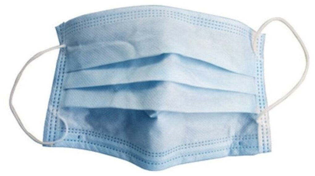 Маска медицинская 3-х слойная голубая, 50 штук в упаковке.