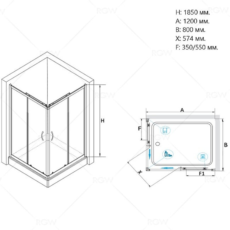 Душевой уголок RGW 90х120х185 см CL-44 Прямоуг., Хром, Прозрачное, 5 мм (32094492-11)