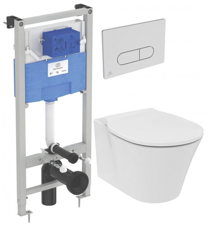 Купить Ideal Standard P212101 Connect Air Промо-комплект 4 в 1: Подвесной унитаз, крышка-сиденье, инсталляция, клавиша смыва