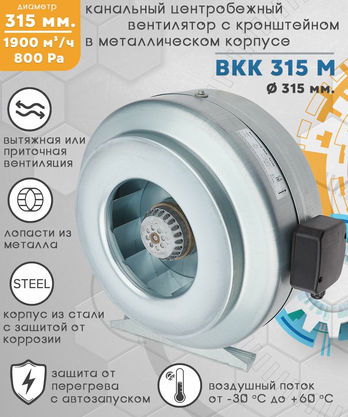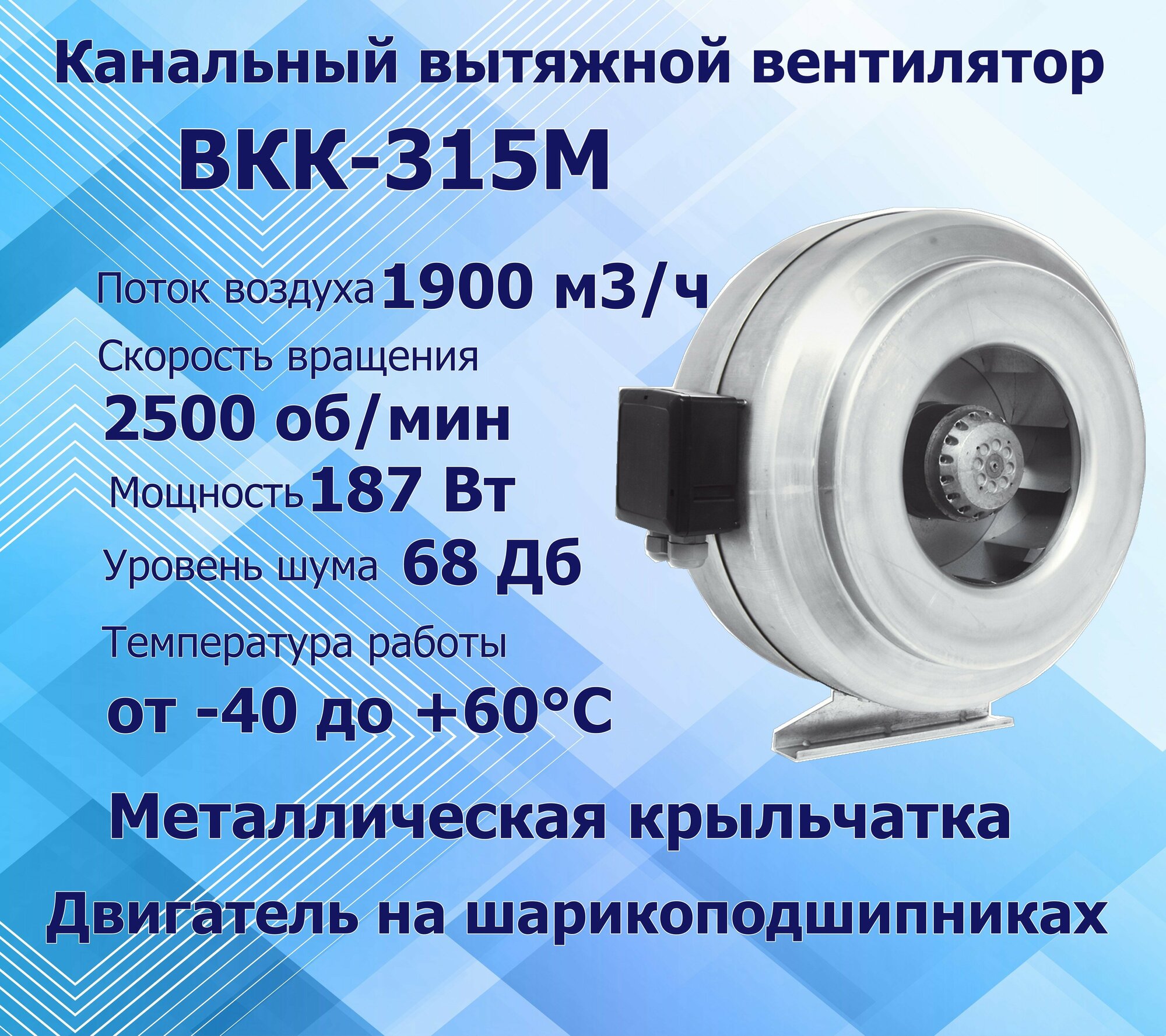 ВКК 315 М вентилятор канальный центробежный 1900 куб.м/ч. 800 Па, диаметр 315 мм