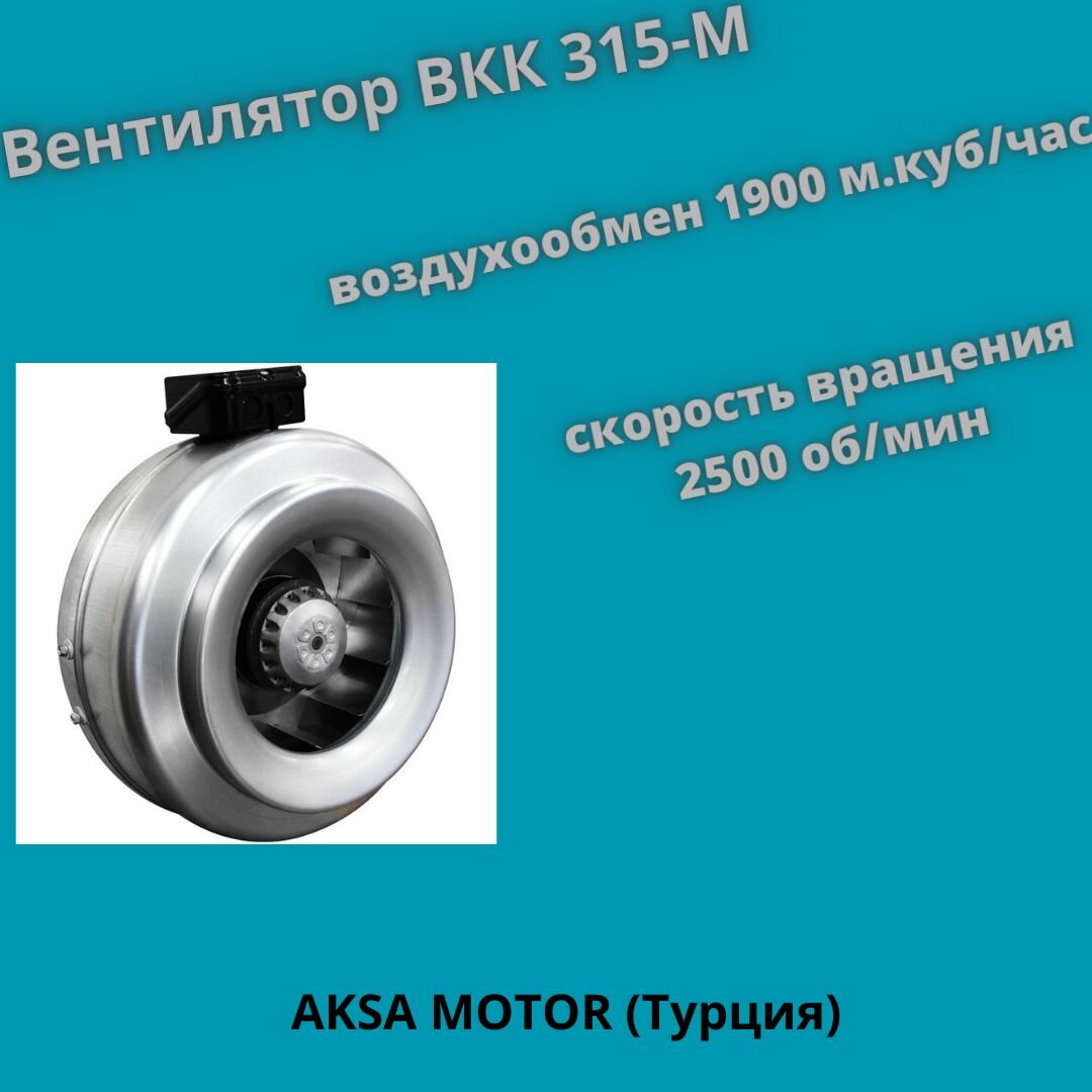 Вентилятор канальный ВКК 315М, производительность 1900 м3/час, 2500 об/мин.