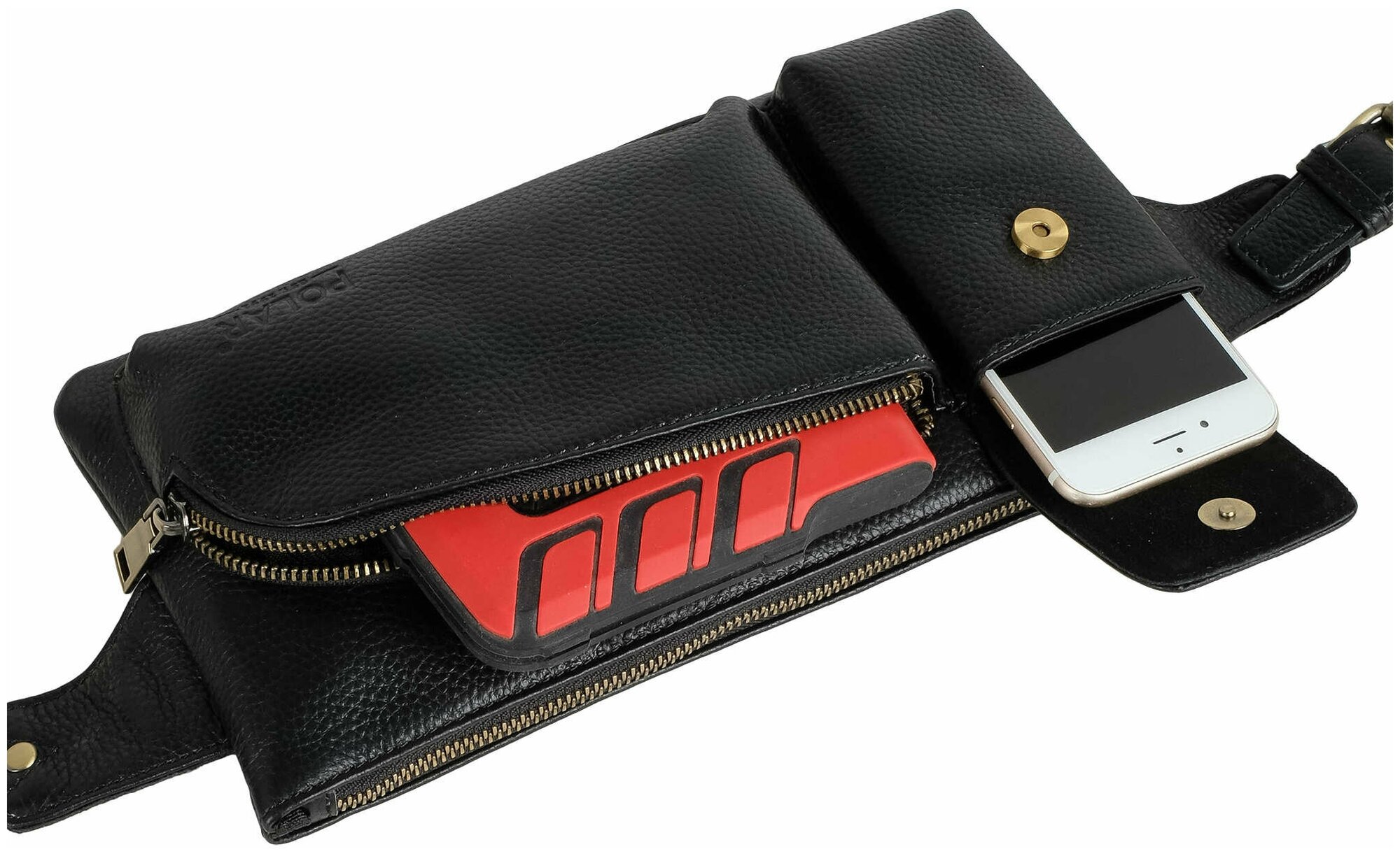 Сумка Polar на пояс, натуральная кожа, на плечо, для документов, черный 28 х 15 х 3