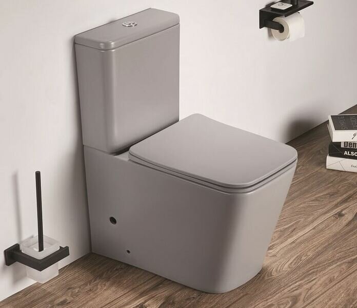Унитаз-компакт CeramaLux 2170AXMH безободковый 38х64 см с сиденьем, светло-серый матовый